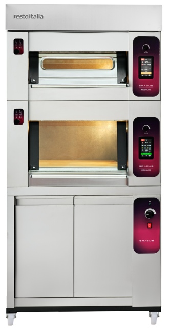 Le four électrique pour pizzeria CRATOS offre toutes les performances de cuisson d’un véritable four à bois traditionnel. Il permet de préparer une authentique pizza napolitaine grâce à la technologie « Gradus », qui garantit une cuisson parfaite et uniforme.
